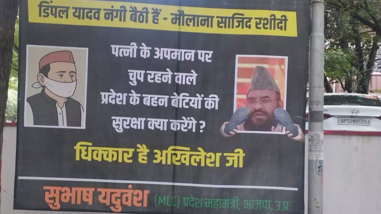 चुप्पी साधने वाले कैसे करेंगे बहन-बेटियों की रक्षा? — लखनऊ में अखिलेश के खिलाफ पोस्टर।