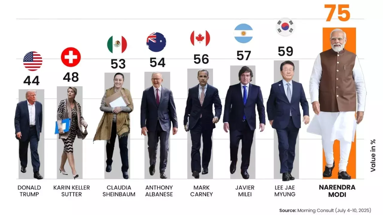 पीएम मोदी विश्व के सबसे लोकप्रिय नेता, 75% अप्रूवल रेटिंग के साथ सबसे आगे।